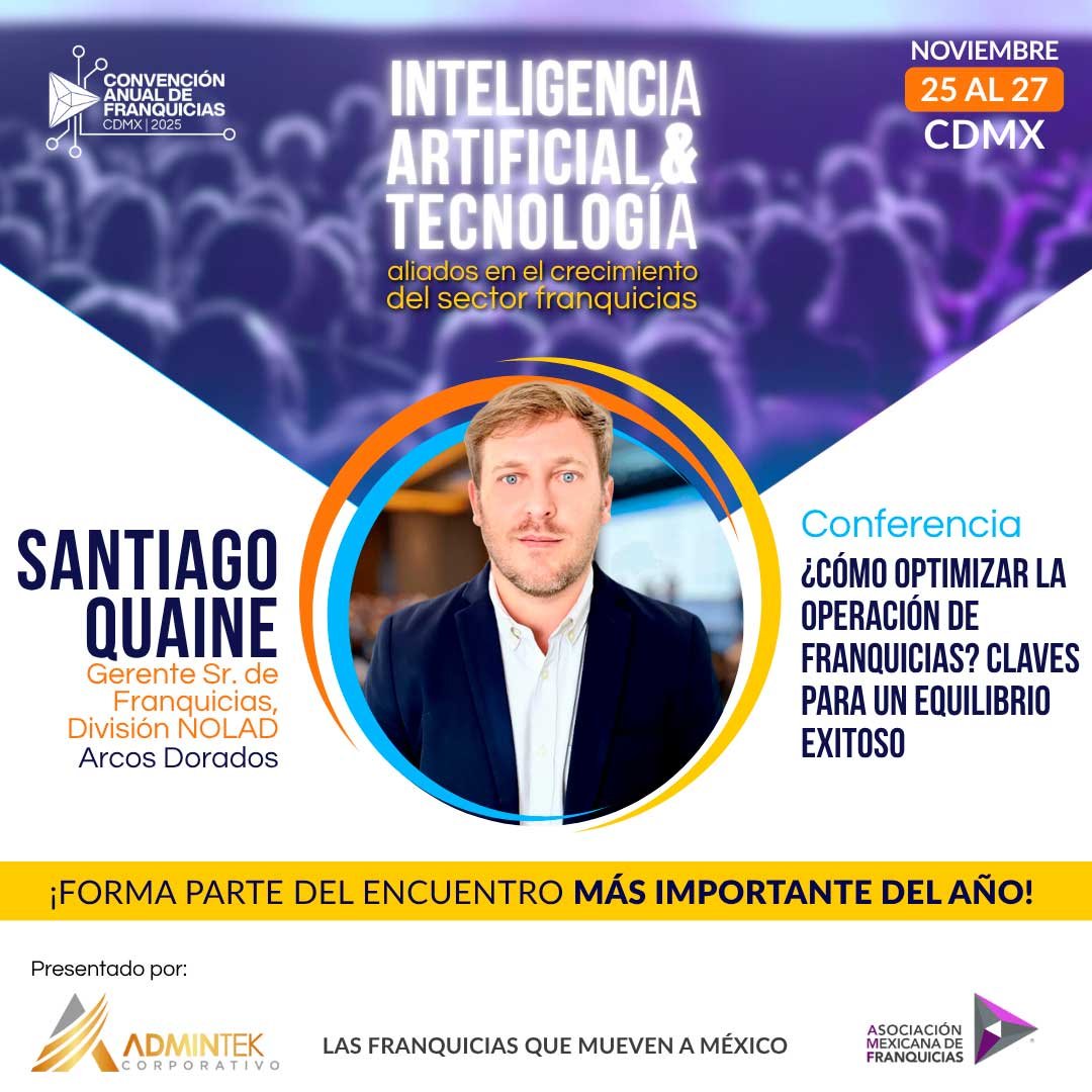 17:00 - 18:00 | Conferencia: ”¿Cómo optimizar la operación de franquicias? Claves para un equilibrio exitoso.”, Santiago Quaine- Gerente Sr. de Franquicias, División NOLAD Arcos Dorados.