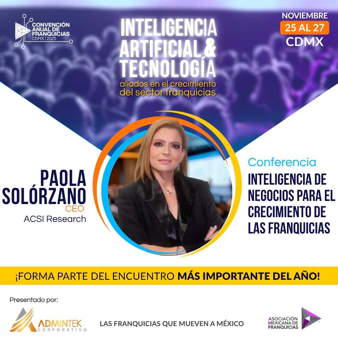 12:30 - 13:30 | Conferencia: ”Inteligencia de Negocios para el Crecimiento de las Franquicias”, Paola Solórzano – CEO, ACSI Research.